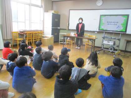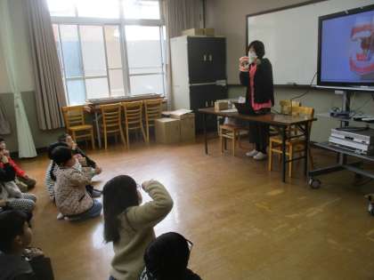 いつもしているはみがきの大切さについて,歯ブラシの模型やビデオを使ってていねいに教えていただきました。
