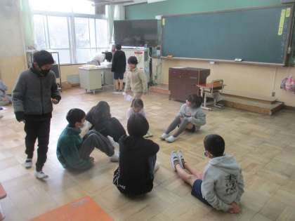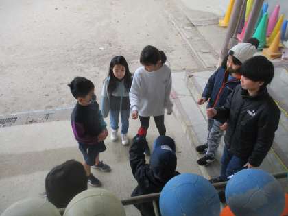 室内と運動場に分かれて,高学年のリーダーシップで楽しそうに活動していました。