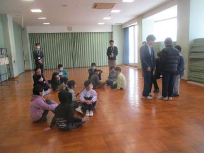 最初,オンラインで全体会を行ったあとは,中学校のお姉さん,お兄さんたちの進行で,一緒にゲームをしたり体を動かしたりしました。