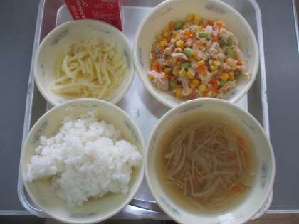 カラフルライスの具は,にんじん・枝豆,コーンをつかって色鮮やかで華やかで混ぜご飯になりました。