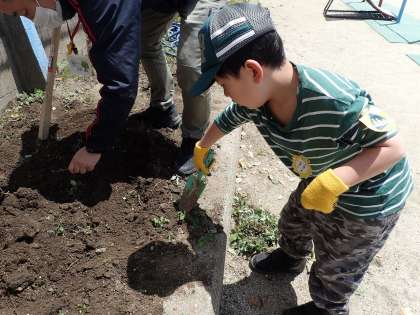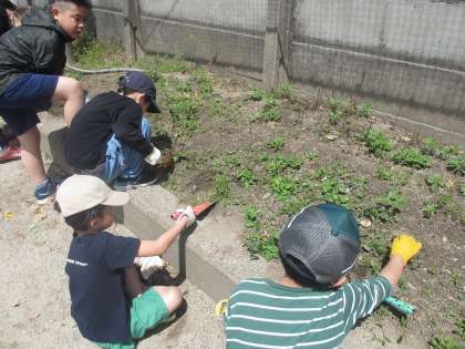今日の3時間目は「夏野菜を作ろう」の学習でした。おいしい野菜を作るために学校の畑の草抜きをしました。スコップを使って、雑草を根っこから抜きました。みんながんばって抜いてくれたので、畑がきれいになりました。来週は畝を作ったり、苗を植えたりします。これから夏野菜作りを楽しんでほしいです。