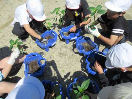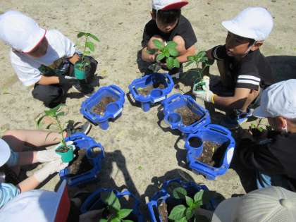 子ども達は、楽しみにしていた野菜の苗を植える活動をしました。