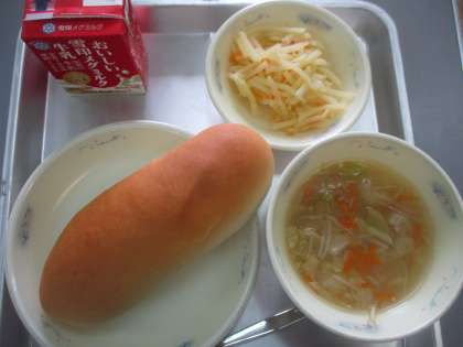 ◆コッペパン ◆肉だんごのスープ ◆じゃがいもの炒め物 ◆牛乳 です。