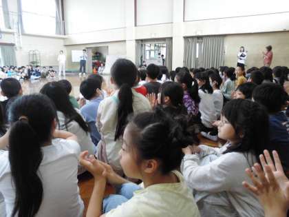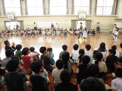4年生は「スポーツ大会」や「くすのきタイム(学習発表会)」の行事を実演しながら紹介しました。