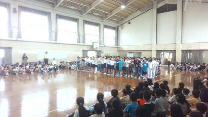 1年生の発表時,上級生が手拍子をしてくれたので,体育館全体が温かい空気に包まれました。