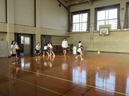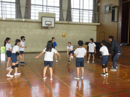 バレーボール部は20人近くの5・6年生が一緒に活動します。