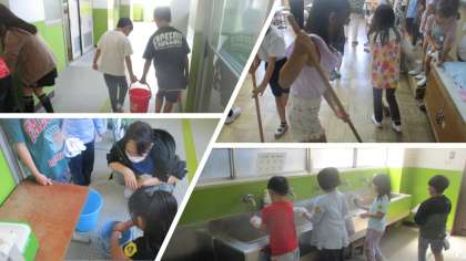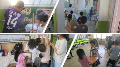 七条小学校は,いつも掃除をみんなでがんばっています。