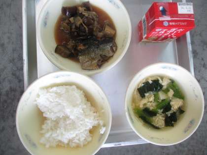 今日の献立は,◆ごはん ◆かきたま汁 ◆にしんなす ◆牛乳 です。