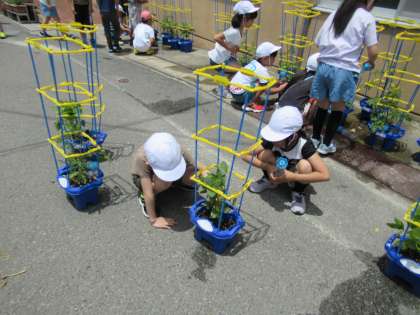 植木鉢の方は大きく育ってたおれそうだったので、支柱を立てました。