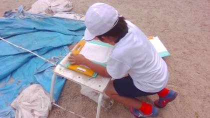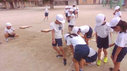 体育の授業で幅跳びをしました。小学校に入って幅跳びははじめての学習で子どもたちはとてもはりきって活動をしていました。記録する係や測る係、スタートの合図を出す係などそれぞれが自分の役割を一生懸命果たしていました。