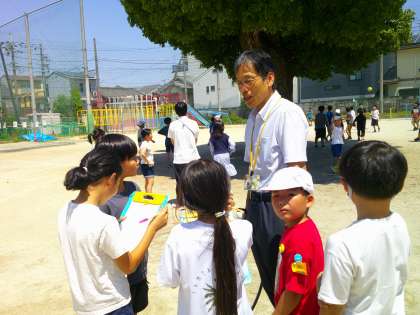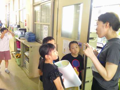 総合的な学習の時間で学校のことを調べる活動をしています。