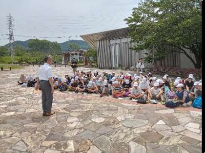 野島断層保存館の館長さんぼお話を聞きます。当時の状況 人々の思い等をお聞きしました。みんな真剣にメモを取っていました。