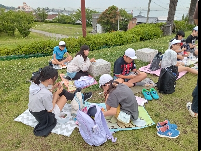北淡震災記念公園の広場で昼食です。朝早くからお弁当の用意をしていただき、ありがとうございます。感謝していただきます!