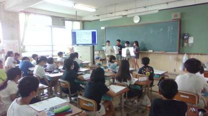 自分が選んだ本の紹介をカードにまとめて、他学年に紹介しに行くために、練習しました。相手に伝わるように、紹介の仕方を工夫しました。