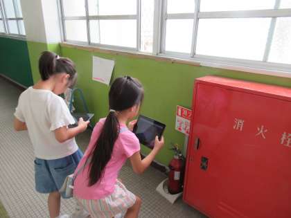 今日は学校の中には、どんな「情報を伝えているもの」があるか探しに行き、見つけたものを写真に撮りました。