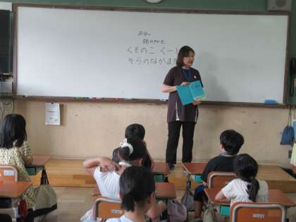 今日の朝もボランティアの皆様に読み聞かせをしていただきました。