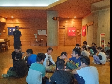 お風呂の時間です。予定時刻よりかなり早くやって来ました。大きいお風呂を楽しみにしているようですね。