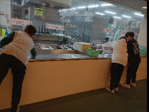 ごはんは、自動でよそってくれます。食べ終わった後は、ゴミを分別したり食器を洗ったりきれいに片付けます。ごちそうさまでした!