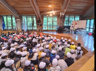 今日は花背山の家を同じ日に利用している他の学校との合同朝の集いです。