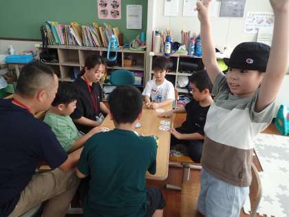 お昼休みには学級で鬼ごっこをして、5時間目のお楽しみ会ではカードゲームやなんでもバスケットなどをして親睦を深めることができました。