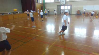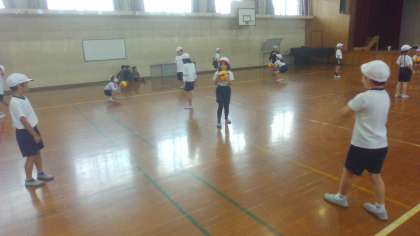 体育科の学習で「用具遊び」をしました。ボールを使ってパスをしあったり、ボール送りゲームをしたりしました。とても楽しく活動することができました。