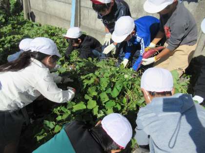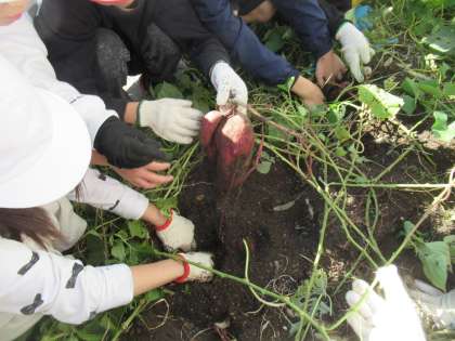 学年園に植えていたさつまいもの収穫をしました。