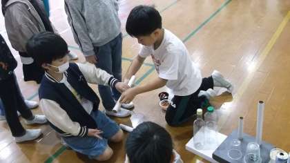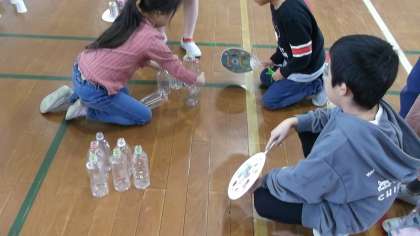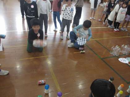 今日の1、2時間目は2年生に招待され、2年生が生活科の授業で作ったおもちゃを使って体育館で遊びました。うちわであおいでボールを落としたり、磁石を使ったクレーンゲームで遊んだりと2年生が作った工夫いっぱいのおもちゃで、楽しく遊ぶことができました。