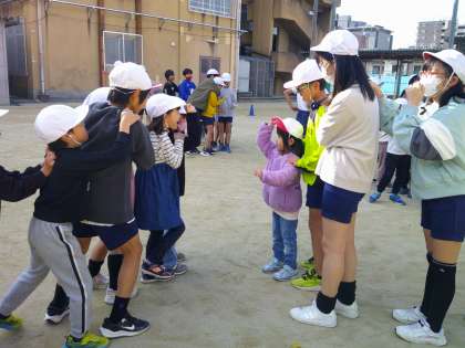 6年生が授業の一環で、「1年生と一緒に遊ぶ」をテーマに遊びを考えてくれました。いつも仲良くしてくれるお兄さんお姉さんが考えてくれた遊びを1年生も楽しく参加していました。
