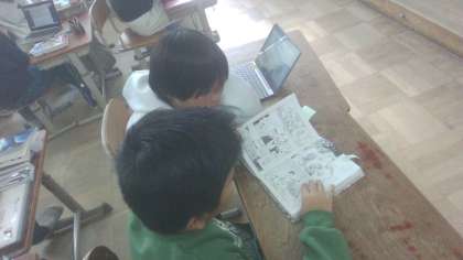 今回は、自分がいいなと思った言葉や考え方を交流しました。「どんな人物なん?」「なぜこの言葉が心に響いたん?」と質問をし合うことで、自分の考えがはっきりしてきたようです。「偉人の言葉の受け取り方がそれぞれ違っておもしろいな。」「この偉人の考え方もいいな。」と考えを広げました。それぞれの生き方先生が見つかったようです。