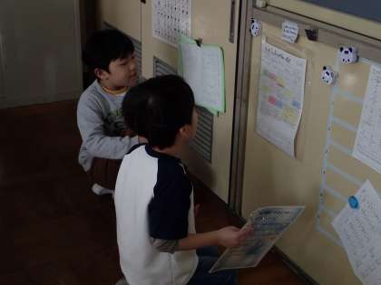 1・2年生のペアで、元気いっぱいに声を合わせて日直を頑張っていて素敵でした。