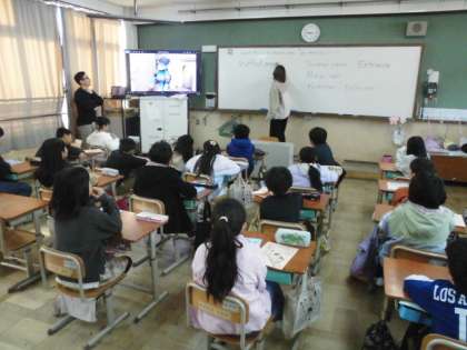 外国語活動の学習では「This is my favorite place」という新しい単元の学習が始まりました。今日は七条小学校の色々な場所の写真をヒントに英語ではどのように言うのかについてALTの先生と確認しながら発音の練習をしました。