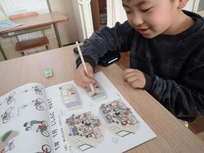なぜ地震が起きるのか、教室のマットを重ねて地球のプレートの説明をしたり、安全ノートを用いて絵を見て考えたりして防災について考えを深めることができました。
