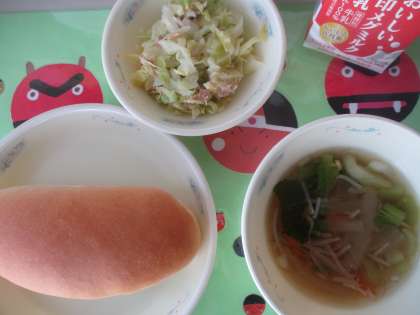 今日の献立は、◆コッペパン ◆ツナサンドの具(フレンチ味) ◆スープ ◆牛乳 です。
