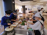京都府栄養士会さんにご協力いただき、海老芋ハンバーグなどを作りました。「美味しい」と嬉しそうに食べていたので上手に作ることができました。