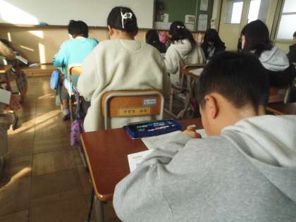 算数科では、「分数」の学習をしています。仮分数を整数や帯分数に直したり、分母が等しい分数の大小を比較したりするなど、分数の仕組みについて理解を深めています。積極的に手を挙げて学習に取り組んでいます。
