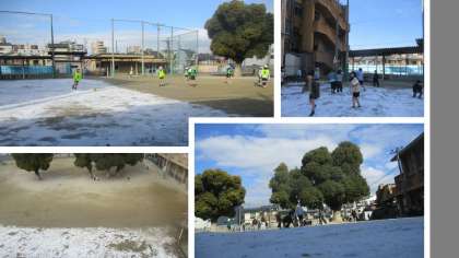 6校時が終わり下校時になっても,まだ残っています。数年に一度の寒波と言われるだけありますね。今日も寒かったです。