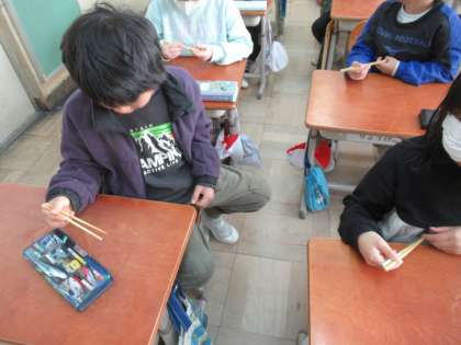 先週、栄養教諭から正しいおはしの持ち方について教わりました。