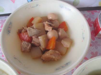 お馴染みプリプリ中華炒めです。「プリチューだ〜!」子どもたちも休職前から喜んでいます。新鮮な野菜とお肉を使い,一味とうがらしがアクセントとなっている中華風の炒め物です。特に、一味とうがらしのピリッとした辛さが料理に深みを加え、食欲をそそります。「辛いけどおいしい!」「また食べたい!」と、子どもたちからも大人気です。