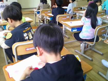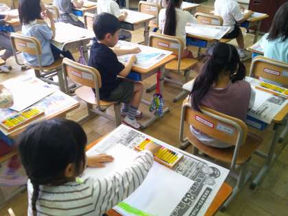 1年生の図画工作の授業で「どんどんかくのはたのしいな」をしました。