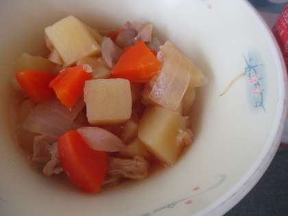 鶏肉と野菜の煮付けは、鶏肉と野菜をじっくり煮込んだ温かい一品です。しっかりと味が染み込んで,野菜の甘みが感じられてとってもおいしくいただきました。