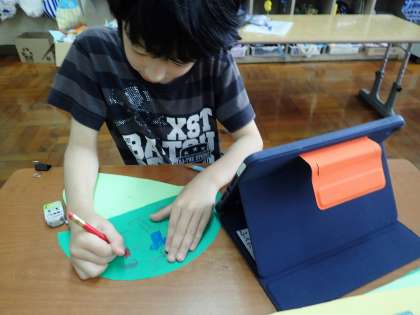 紫陽花の切り絵や傘などを作り、自分なりに表現して取り組むことができました!