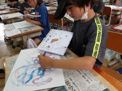 水の量の違いだけでもたくさんの色が作れるんだと楽しくかいていました。