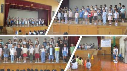 今日は、くすのきタイムのリハーサルとして、全学年で発表会を交流しました。