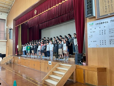 くすのきタイムで「愛」をテーマに群読と合唱を発表しました。大勢の保護者の方々の前で発表するので、とても緊張していましたが、これまでの練習の成果を発揮することができました。