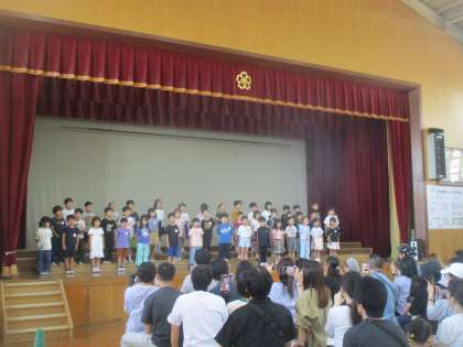1時間目はくすのきタイムで、お家の方の前で発表。たくさんのお客さんがいて緊張したようですが、音読の宿題で練習にもご協力いただいたお家の方々に見ていただけて、子ども達は「がんばった!」と大満足でした。