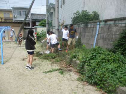 園芸委員会の5〜6年生が、花壇の草抜きをしてくれました。