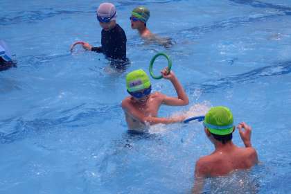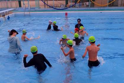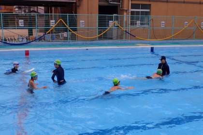 またみんなで輪になって浮かぶ活動後は、各自で泳いだり浮いたりする練習に取り組みました。