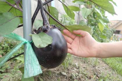 しいのみ畑で育てている夏野菜の4種類のうちの1つ、賀茂茄子を今日初めて収穫しました!