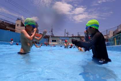 しいのみ学級の児童は2度目となりますが、学年での水慣れの活動の仕方や、指導者の先生の話をよく聞いて活動することなどを頑張りました。