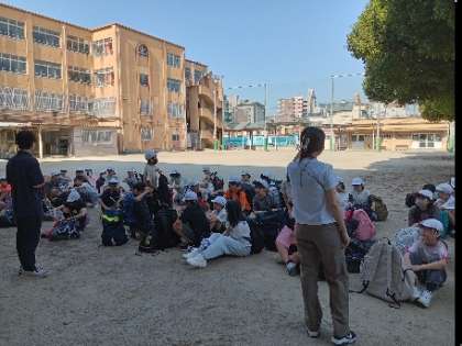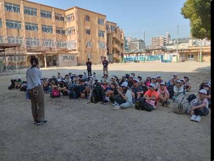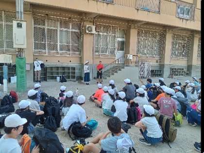 いよいよ修学旅行です!朝早くから荷物を背負った6年生が登校してきました。 担当の人が、力強い出発の言葉を言ってくれました。お見送りの皆様、ありがとうございます。